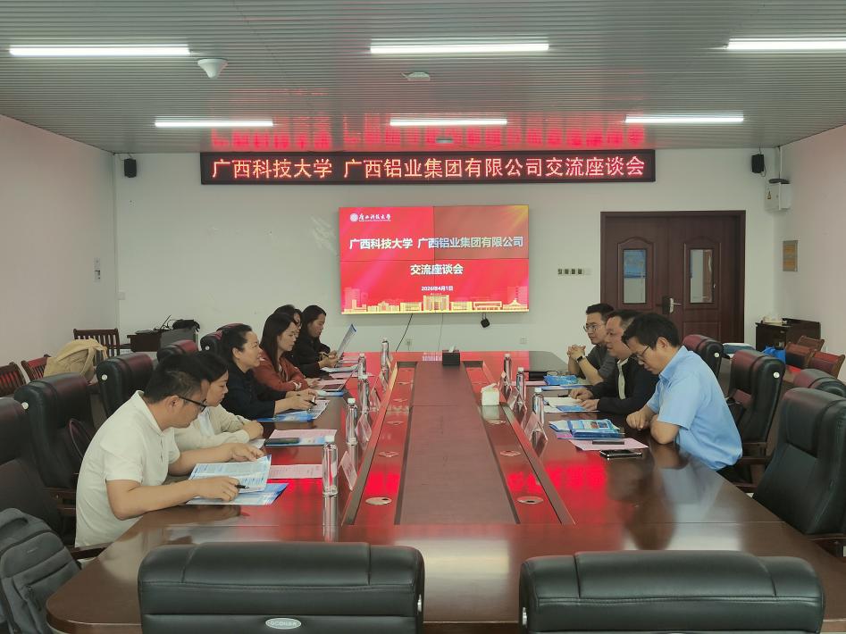 4月1日,广西铝业集团有限公司党委副书记、职工董事、工会主席何军容一行到我校开展校企合作交流,座谈会在柳东校区L1-502会议室举行。会议由学工部(处)副部(处)长、就业中心副主任秦文东主持。