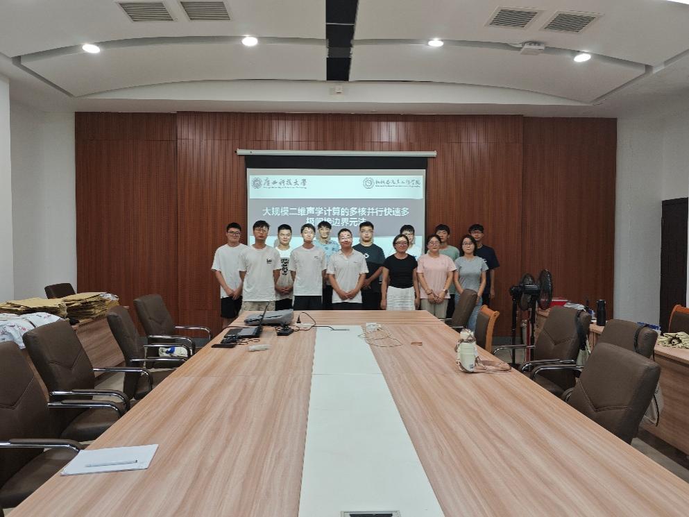 2025年10月16日机械与汽车工程学院于柳东校区H4第一会议室举办了一场学术沙龙。在读研究生李鑫同学带来了题为《大规模声学计算的快速多极虚拟间接边界元法》的精彩学术分享。