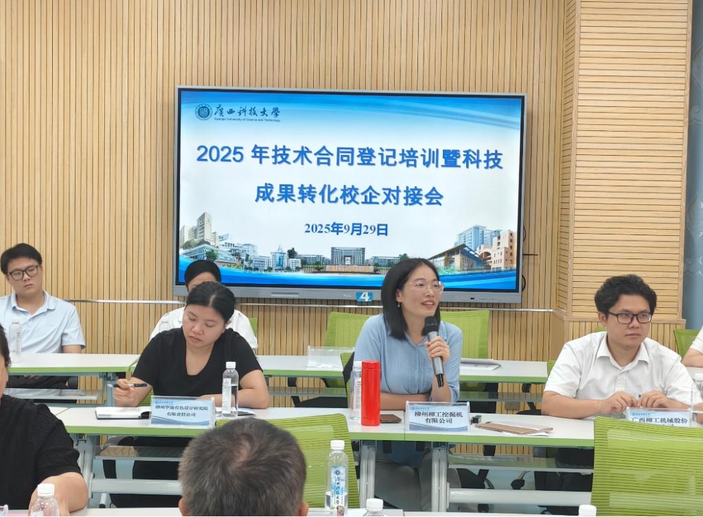9月29日上午,由我校与市科技局联合主办的“2025年技术合同登记培训暨科技成果转化校企对接会”在文昌校区第四教学楼4D403举行。市科技局、市科技情报所相关领域专家,学校相关学院(部)科研负责人、科研骨干,柳州市其它高校教师及30多家企业代表参加此次会议。会议由科研处副处长朱晓琴主持。