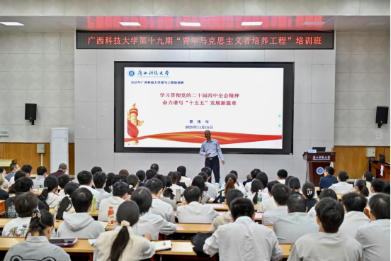 11月15日上午,广西科技大学第十九期 “青年马克思主义者培养工程” 暨党的二十届四中全会精神专题报告会顺利举行。学生代表200多人参加报告会,校团委书记蒋智华主持报告会。