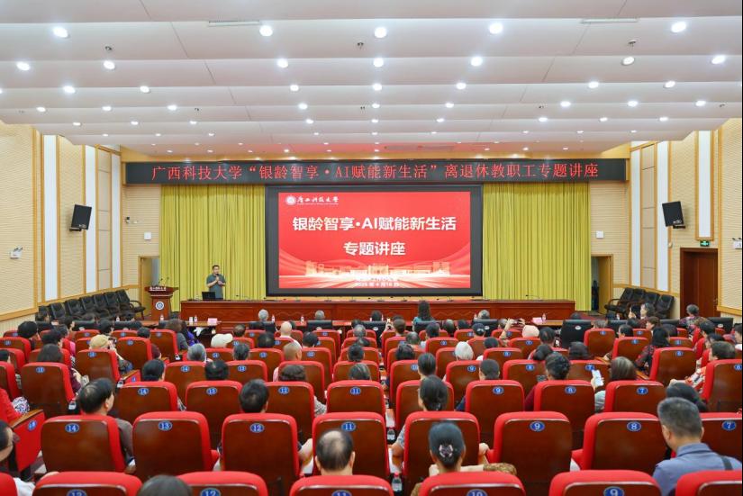 为深入践行积极老龄观、健康老龄化理念,帮助广大离退休教职工紧跟智能时代发展步伐,熟练掌握人工智能实用技能,切实破解数字使用难题、跨越数字鸿沟,尽享科技赋能生活的便利,4月16日上午,广西科技大学离退休工作办公室精心举办“银龄智享·AI赋能新生活”专题讲座,为学校及第一附属医院、第二附属医院近200名离退休教职工送上实用科技课堂。