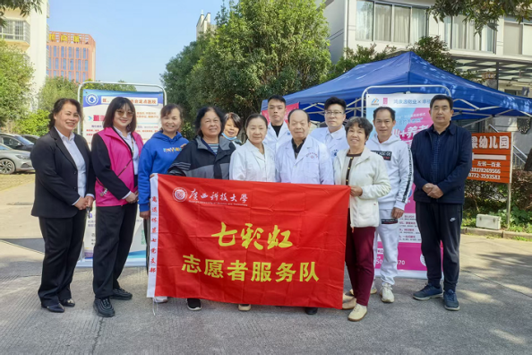 2025年第四季度,第七党支部坚持以多种形式扎实推进党员学习教育,积极发挥党建引领作用,牵头组织“七彩虹”志愿者服务队深入开展系列志愿服务活动。11月18日,志愿者毛良玉、叶琳、蒋敏强、唐焕韶等专程看望居住在北站路的80多岁原外科骨干教师林蔼军老师,与其共忆往昔、畅谈初心,为独居且行动不便的老人送去党组织的温暖与精神慰藉;11月29日,叶琳、侯昭才、毛良玉、凌缓等6名志愿者联合柳州市董御生中医院医务人员及桥园小区物业办,在桥园小区开展健康宣传咨询义诊活动,为居民提供血压血糖检测、中医问诊和慢病指导等服务;12月4日下午,“七彩虹”志愿者服务队又联合白莲街道洛维社区党委、学校离退休工作党委第七、第八党支部,在桥园小区开展“清洁家园环保行”主题志愿服务,近30名党员及非党员志愿者对小区健身器材进行全面擦洗,并对主干道两侧垃圾进行清理分类,营造整洁有序的社区环境。系列活动充分彰显了退休党员和志愿者尊老爱幼、乐于奉献、服务社会的高尚情怀,切实发挥了基层党组织战斗堡垒作用和党员先锋模范作用,推动党建引领基层治理走深走实。
