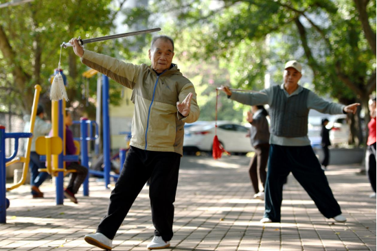 何群生为退休教工传授太极剑法