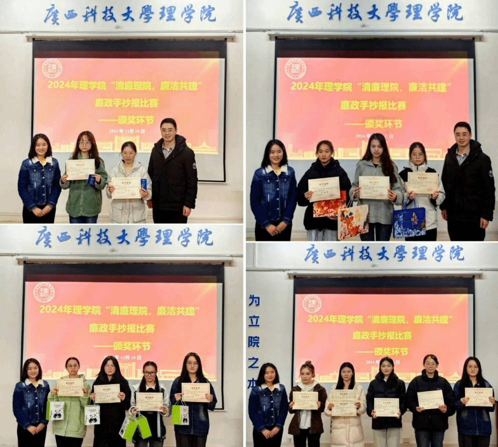 12月10日,学院党委副书记、纪委书记黄洪雷,团委书记李伟青依次为获奖代表颁奖。黄洪雷总结指出,本次比赛旨在通过手抄报的形式,提高青年大学生廉洁自律意识,引导青年大学生树立正确的世界观、人生观和价值观,系好清廉“第一粒扣子”,不断推动学院清廉文化建设。