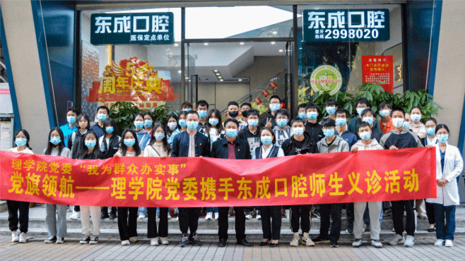 为进一步推动党史学习教育走深走实,扎实推进“我为群众办实事”实践活动,11月27日,理学院党委携手东成口腔开展“党旗领航——我为群众办实事师生口腔义诊活动”。学院党委副书记、纪委书记韦耀宁和学院党委委员、团委书记黄韬及师生40余人参与活动。