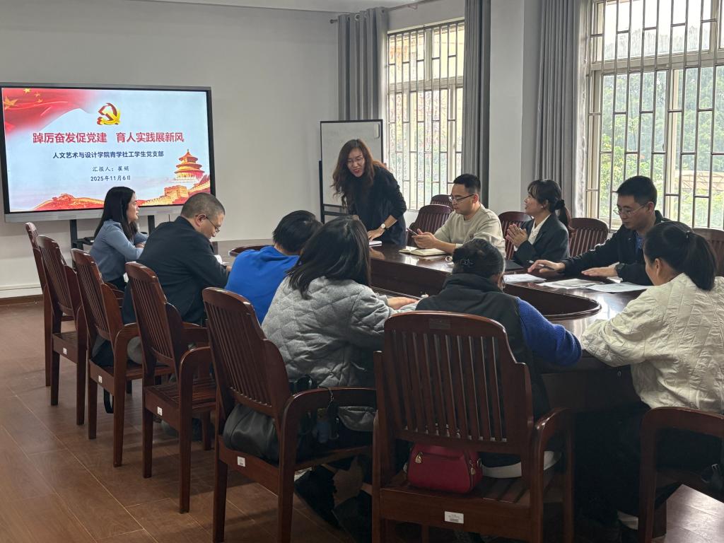 会上,全国党建工作样板支部、人文艺术与设计学院青学社工学生党支部书记崔娟老师以《踔厉奋发促党建 育人实践展新风》为题作经验交流。崔娟围绕支部支部重点任务完成情况、重要措施落实成效、示范作用发挥以及信息平台参与等方面,系统介绍了支部在党建引领下的育人实践与社会服务成果。