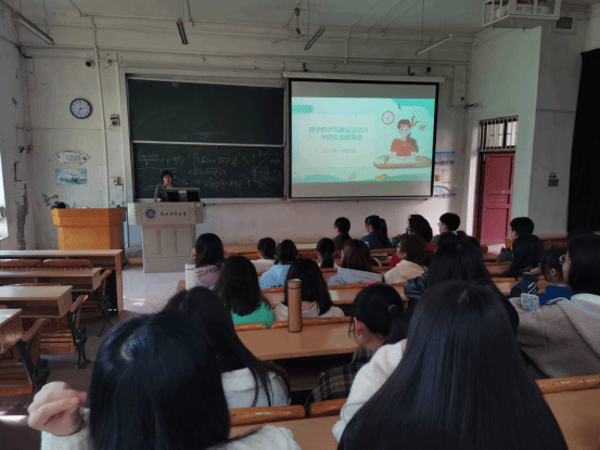 图为英语老师李彤在我院开展大学英语四六级专题讲座