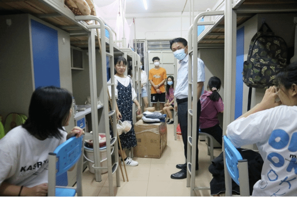 走访过程中,领导和老师们与新生亲切交谈,热情地询问他们的个人和家庭情况,关心他们到校后的生活,耐心解答他们提出的疑问,鼓励同学们尽快转变角色、积极调整状态,融入大学生活。领导和老师们还特别提醒同学们要注意财物安全和用电安全等,叮嘱大家要严格遵守学校疫情防控要求,每天坚持健康打卡,注意做好个人防护。
