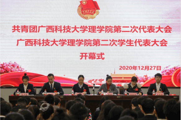 12月27日,共青团广西科技大学理学院第二次代表大会,广西科技大学理学院第二次学生代表大会在图书馆报告厅召开。校团委副书记王湘林、理学院党委书记陈树春、理学院辅导员张林微出席大会。兄弟学院团委书记、学生会负责人应邀参会。参加大会的团员代表66名、学生代表65名。大会由学院团委书记黄韬主持。