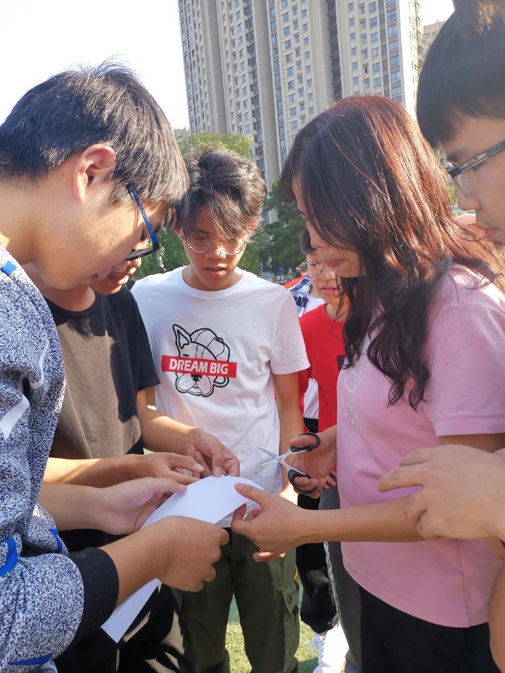 本次活动共设有五个趣味游戏,老师和同学们被随机分成了八个小组,依次进行游戏比赛。这不但是智慧和体力的角逐,更是团结和协作的完美比拼。“十人九足”体现的是团队合作能力及协调能力,一支支整齐划一的队伍奋勇前进,他们势不可挡的步伐展现着理院人的风采。“托举球”来回接力运球,考验耐力和平衡力,对准同一个球,对准同一个目标。“趣味剪纸”掀起头脑风暴的热潮,用最短的时间把一张白纸剪切成圈,并使全部组员通过。“撕名牌”讲究团队的配合与战术的制定,每一次狭路相逢都会有一场惨烈的“厮杀”,尽情爆发你的小宇宙。拔河比赛是力量的对决,紧握麻绳,迈开弓箭步,像愤怒的狮子般,用尽全身的力气与对手顽强拼搏。比赛可谓是妙趣横生,高潮不断,精彩纷呈,掌声、欢呼声此起彼伏,热闹非凡。同学们个个激情饱满,全力以赴,尽情挥洒着汗水,为团队荣誉而战。最后,本次活动在欢乐的笑声落下了帷幕。