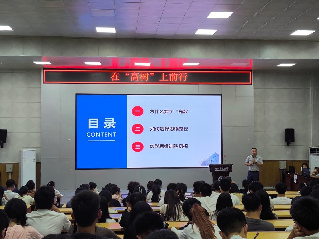报告会上,郭真华教授围绕为什么要学“高数”;如何选择思维路径;数学思维训练初探三个方面展开报告,详细介绍了数学的应用与应用数学;数学思维训练的误区和路径;学好数学需要熟能生巧、多辩善思和融会贯通。这一讲座使得在座的学生更加丰富了自己的学习认知,激发了学生们进一步学习、学好数学的热情。