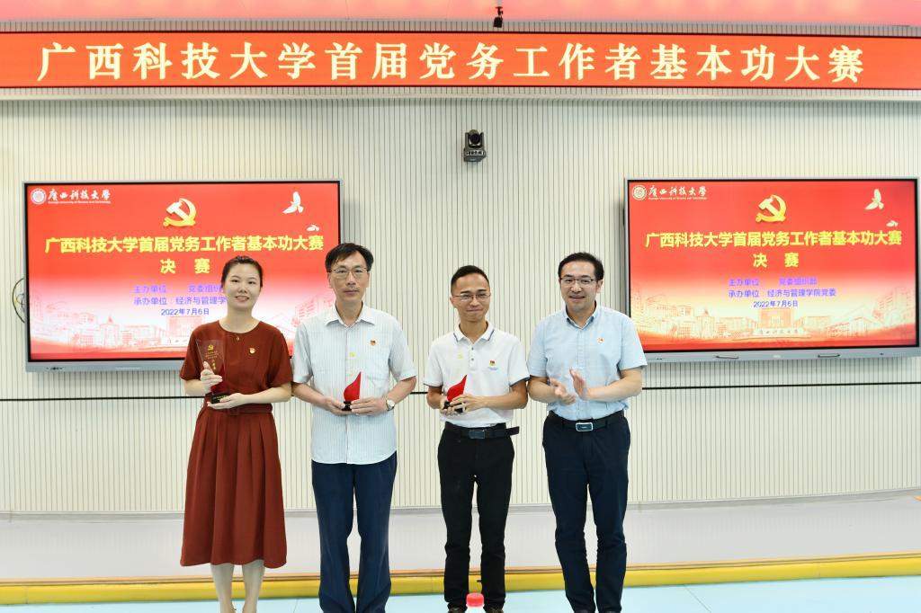 自7月4日正式开始的学校首届党务工作者基本功大赛(线下部分),经过连续三天的比拼,至6日下午圆满落幕。由学院党委专职组织员徐柳苏、教工基础党支部书记覃柏英和院团委书记、学生信计党支部书记黄韬等三位同志组成的参赛小组,代表我院出征并取得了喜人的战绩。