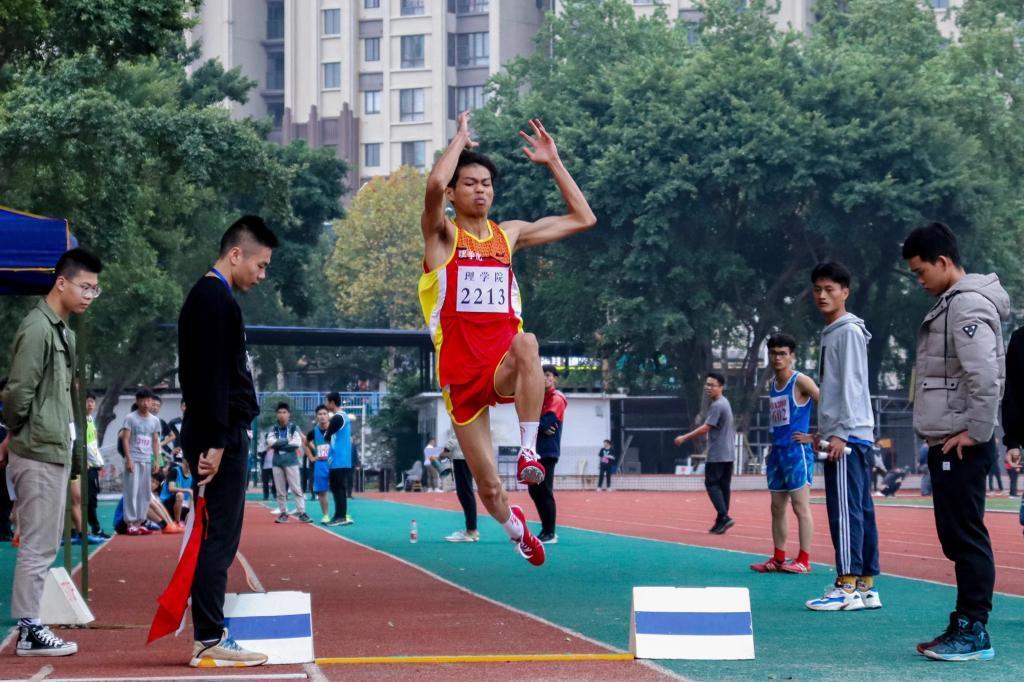 经过两天赛事的激烈角逐,理学院运动健儿们在校运会中脱颖而出,理学院取得了团体总分位列第五,女子团体总分和男子团体总分各第4名的优异成绩。其中苏植阳同学获跳远第一名,林庆庆同学获100米跑第二名和200米跑第三名,苏植阳,黄子轩,黄世瀚,杨胜锐同学参加的4*100米接力赛取得第一名的好成绩。
