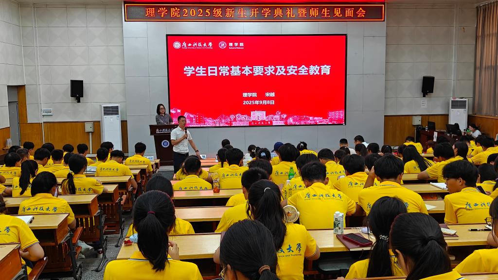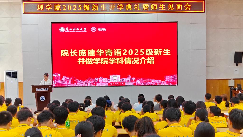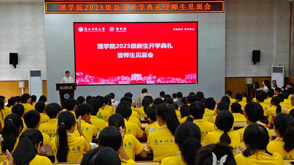 9月8日,理学院在文昌校区图书馆报告厅举行2025级新生开学典礼暨师生见面会。学院党政领导班子全体成员、各系主任、硕士点负责人、专职辅导员及新生班主任,全体2025级新生参加活动。作为新生入学教育的关键环节,本次活动旨在深化新生对学院办学理念与学科特色的认识,促进师生交流互动,帮助学生顺利完成角色转换。