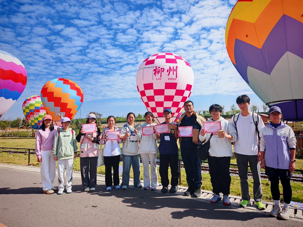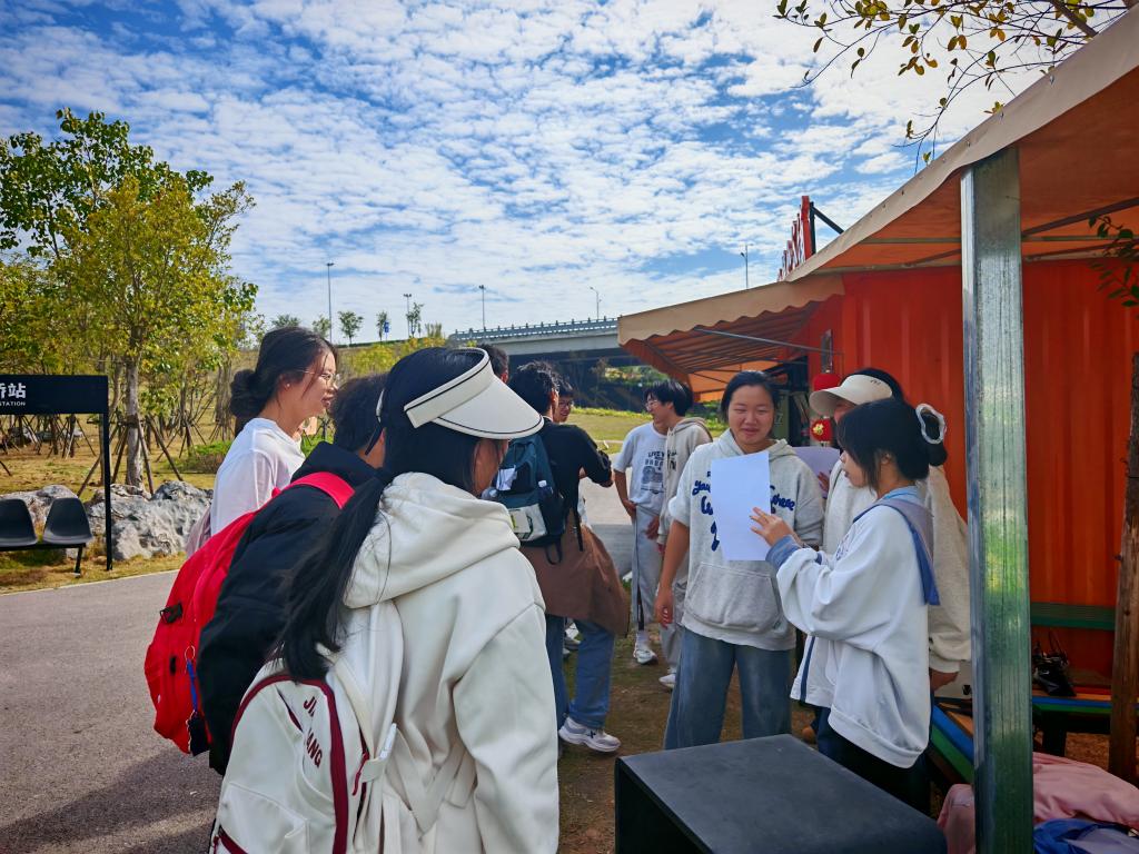 “破晓启航”数理逻辑推理闯关、汉诺塔接力、“薪火传精神”党史猜谜、红歌齐唱等多样环节,将数理知识、思辨协作与红色文化融入闯关徒步环节,让学员在徒步近10公里的过程中增强凝聚力与趣味性,同时也在你追我赶中体验柳州环江美景。