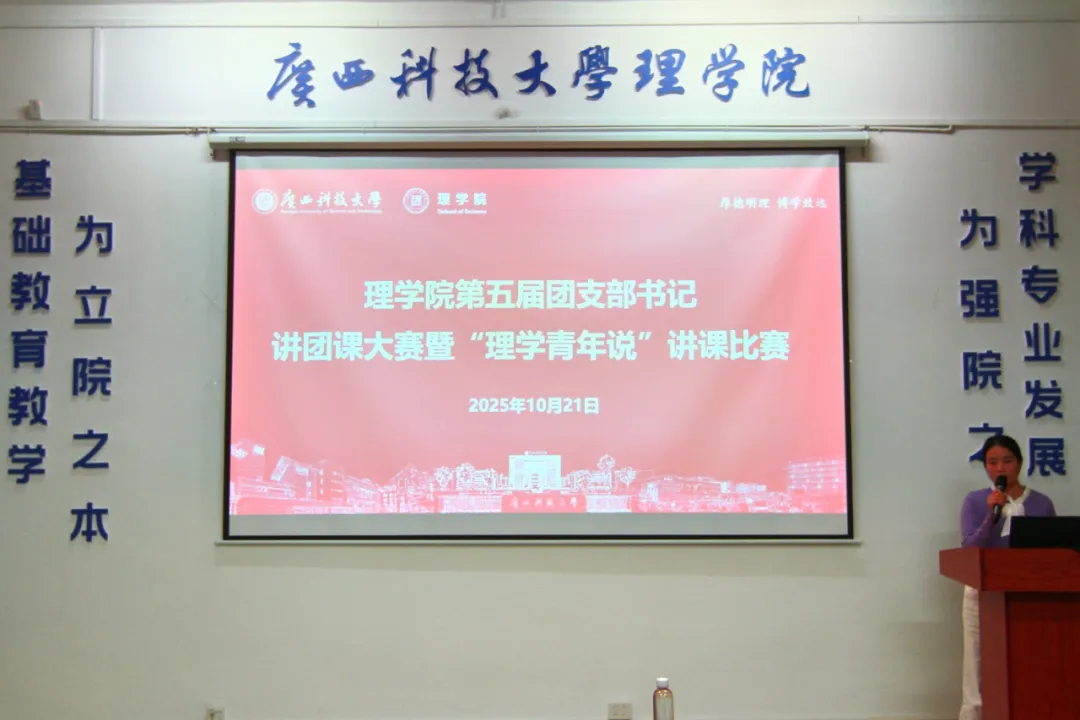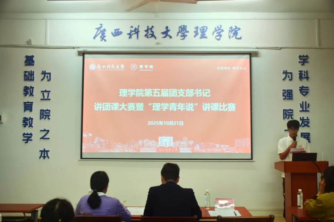 为深入学习贯彻习近平新时代中国特色社会主义思想和党的二十大精神,切实加强团的基层组织建设,提升基层团干部理论宣讲水平,为其搭建展示自我、提升能力、交流思想的平台,2025年10月21日晚,理学院团委在2教306会议室举办理学院第五届团支部书记讲团课大赛暨“理学青年说”讲课比赛。