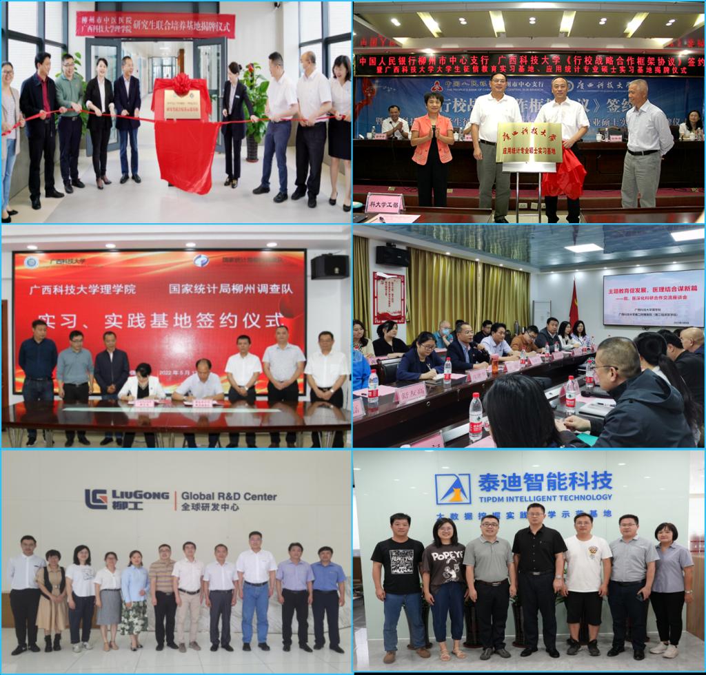 注重发挥数学、物理学、统计学科优势和智力优势,与柳州市统计局,国家统计局柳州调查队,广西柳工机械股份有限公司,广东泰迪智能科技股份有限公司,柳州市中医院、广西科技大学附属第一、二医院等地方企事业单位合作创新,不断拓展社会服务的深度和广度,建立共享机制,多渠道、多层次、多方面地融入到地方经济社会发展之中,取得了良好的社会效益和经济效益。