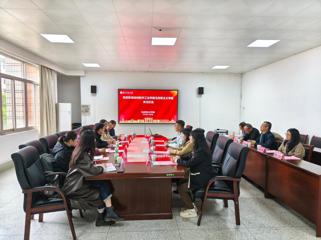 11月4日下午,桂林航天工业学院马克思主义学院副院长吉铠东率领毛泽东思想和中国特色社会主义理论体系概论教研室教师一行7人莅临我院,开展工作交流研讨。我院副院长张磊及概论教研室全体教师参加了座谈会。会议由张磊副院长主持。
