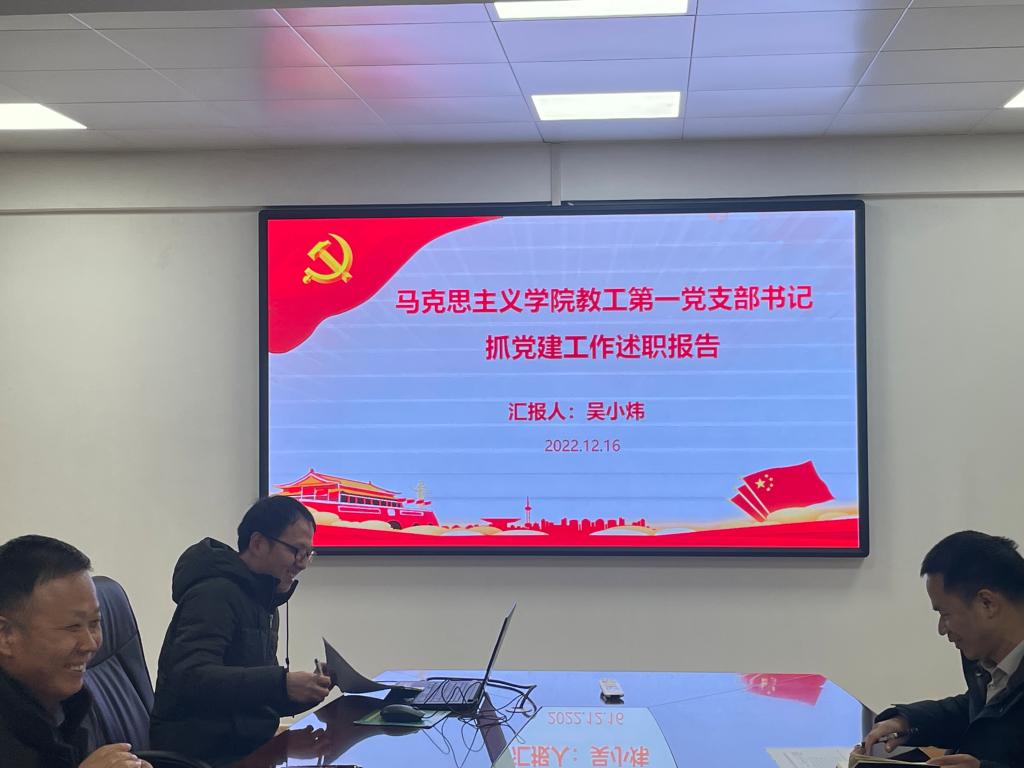 12月19日下午,马克思主义学院在文昌校区第四教学楼708会议室召开党支部书记抓基层党建述职会议大会。本次述职会议大会由学院党委书记、院长戚杰强主持,学院党委副书记、专职组织员、各党支部书记及支部委员参加会议。