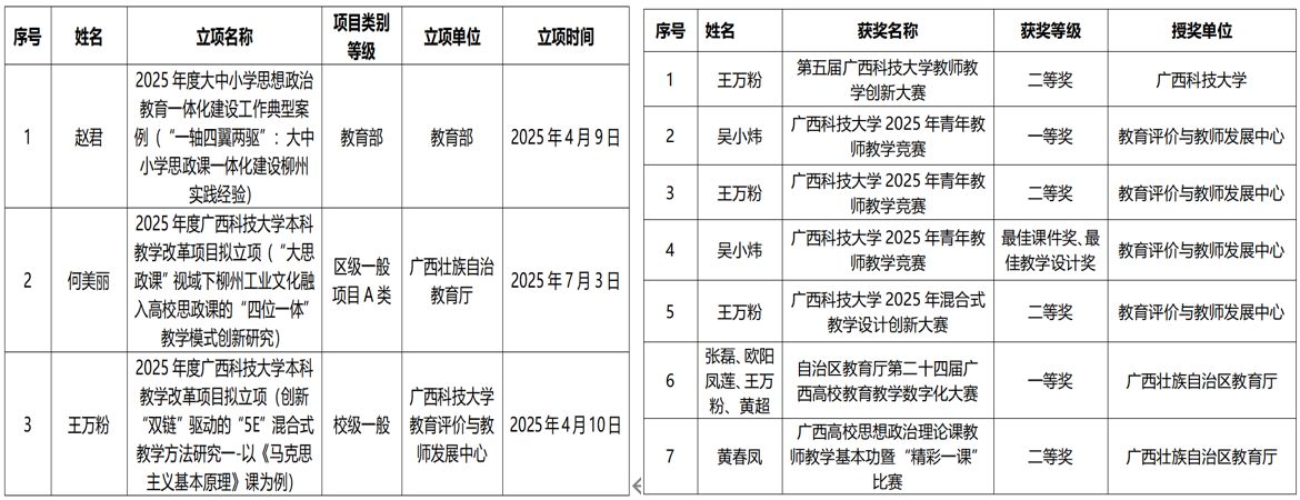 广西科技大学马克思主义学院教工第一党支部2025年教改立项及教学竞赛获奖情况