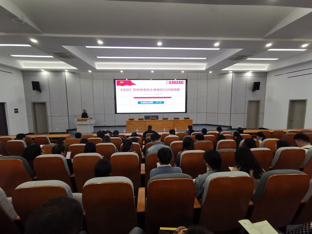 以史为鉴、开创未来。当前及今后一段时期,马克思主义学院全体师生将常态化开展理论学习,弄懂学深悟透践行党的十九届六中全会精神,深刻领会中国共产党在马克思主义中国化百年历史进程中的理论进展与理论创新,并立足于思政课教学研究,学习宣传好、阐释宣讲好、贯彻落实好党的十九届六中全会精神!