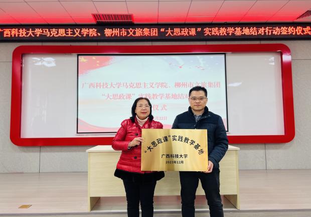 近日,为着力提升“大思政课”铸魂育人成效,马克思主义学院先后与柳州市军事博物园、柳空文创园举行共建“大思政课”实践教学基地挂牌仪式。马克思主义学院副院长梁炳辉、部分思政课教师和学生代表出席挂牌仪式。