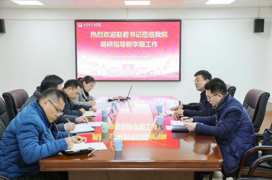 2月26日上午,学校党委书记赵君到马克思主义学院调研指导新学期工作,学校党委常委、统战部部长、党政办主任卢志平陪同调研。马克思主义学院全体领导班子参加会议。