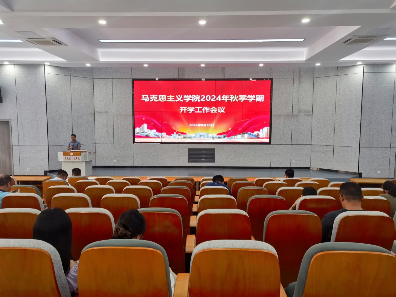 为保障新学期学院各项工作平稳有序开展,8月30日,马克思主义学院2024年秋季学期开学工作会议在文昌校区虚拟仿真思政教学体验中心召开。会议全面回顾总结暑期学院相关工作,统筹安排部署新学期重点工作。会议由学院党委副书记、院长戚杰强主持,学院全体教职工参加会议。