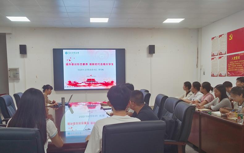 学院党委书记覃雪梅以习近平总书记的重要论述为开篇,强调了开展意识形态教育的必要性,通过列举西方国家对我国实施的意识形态渗透等实例,全面分析了当前我国意识形态领域面临的众多挑战。她指出,作为新时代青年,要坚持用马克思主义中国化最新成果武装头脑,增强“四个意识”、坚定“四个自信”、做到“两个维护”,不信谣不传谣,自觉抵制各种错误思潮的影响,积极传播正能量。她勉励新生要不断提升意识形态素养,提高政治敏锐性和辨别能力,为营造清朗的意识形态空间环境贡献力量。