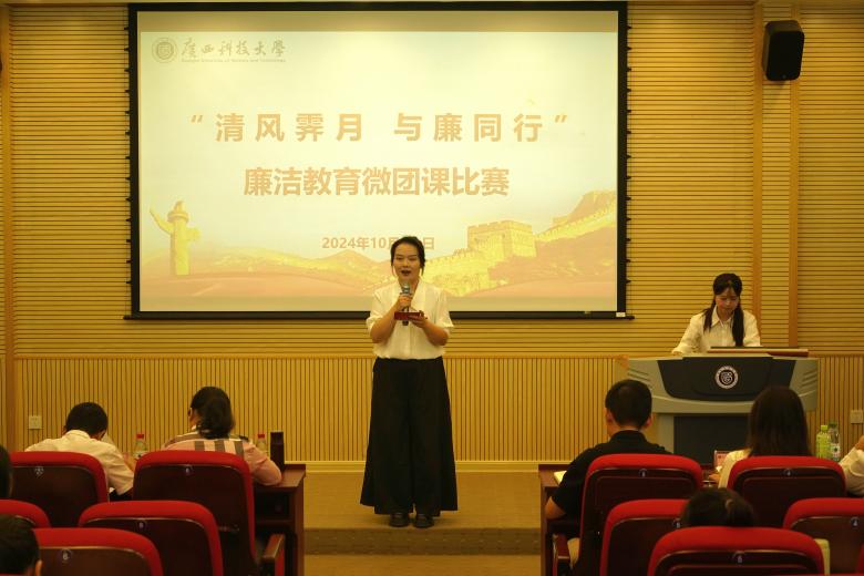 10月18日,马克思主义学院在文昌校区图书馆204A多功能影视厅举行“清风霁月 与廉同行”廉洁教育微团课比赛。学院党委副书记、纪委书记夏辛萍,纪委委员周政龙,学工办主任、团委书记王俊辉以及全体研究生参加活动。