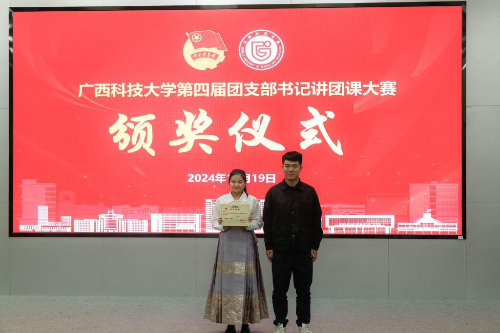 10月29日,广西科技大学第四届团支部书记讲团课大赛在文昌校区图书馆报告厅举行,大赛由学校团委承办,吸引了来自各二级学院(部)的16名选手参赛。马克思主义学院马论研2023班团支书方茗勇夺第一,成功卫冕。