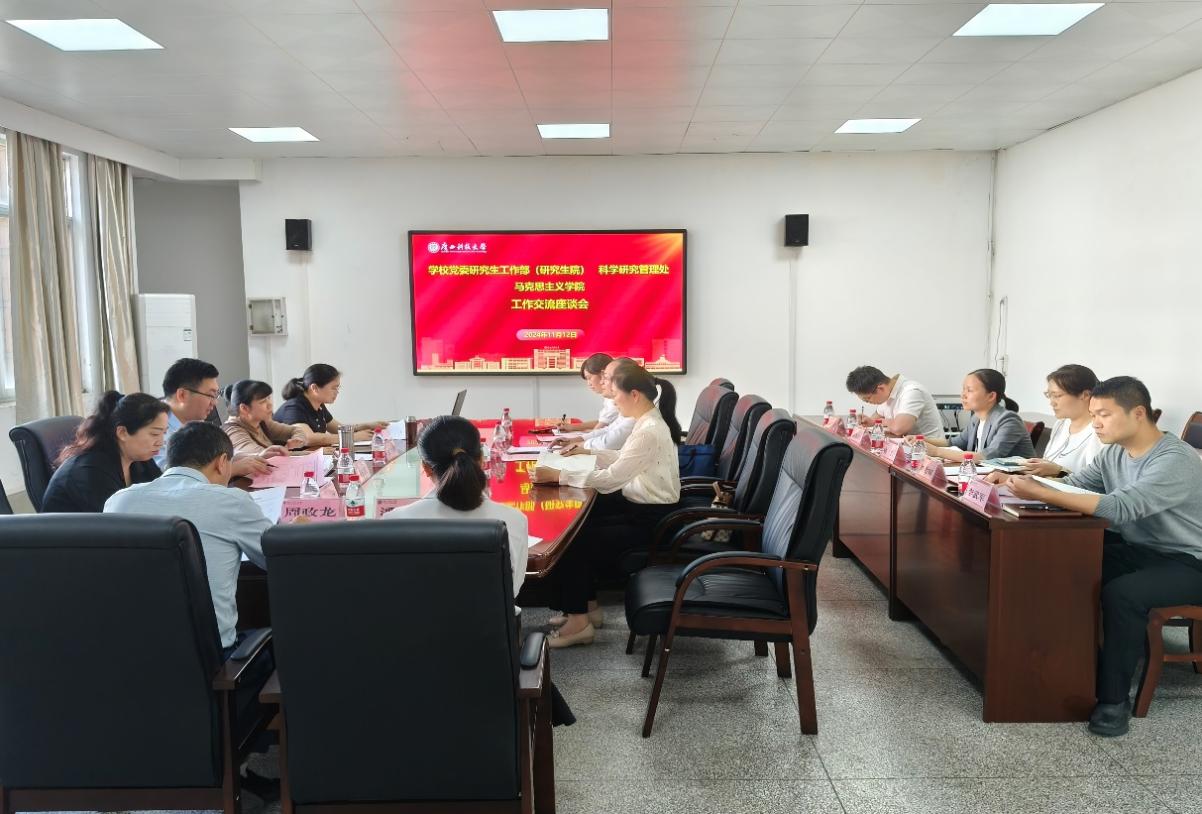 11月12日下午,学校党委研究生工作部(院)副部(院)长叶洪涛、秦利平,科学研究管理处副处长朱晓琴一行莅临马克思主义学院开展调研座谈交流。