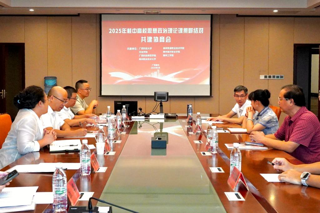 2025年9月20日,由广西科技大学牵头,河池学院、广西科技师范学院、柳州职业技术大学、柳州铁道职业技术学院、柳州城市职业学院、柳州工学院共同参与的“2025年桂中高校思想政治理论课集群结对共建活动”顺利举办。广西高校思政课总教学指导委员会副主任委员、广西科技大学党委书记赵君,广西科技大学党委常委、宣传部部长、教师工作部部长戚杰强,桂中高校马克思主义学院领导、教师及学生代表共90余人参加会议。本次活动以“工业精神铸魂育人”为核心主题,通过专家报告、说课展示、分组研讨等多元形式,共话思政课提质增效路径,为新时代高校思政育人工作注入强劲动力。