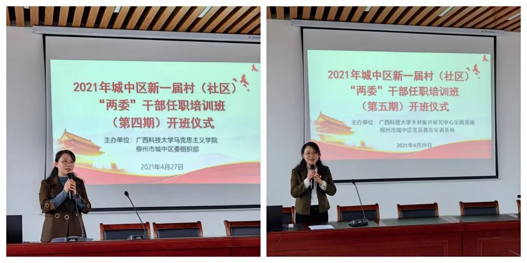 4月27日上午,城中区新一届村(社区)“两委”第四期、第五期干部任职培训班在柳州市城中区环江村委5楼会议室成功举办,本次培训由我院承办。学院副院长欧阳凤莲主持开班仪式,学院王宇教授等五位老师做培训主讲。