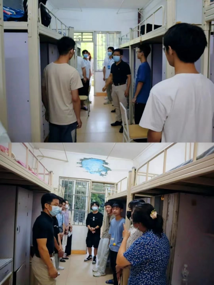 下午5点30分,学院党委书记秦培仁和党委副书记吴却带领新生班主任、导师,辅导员及学生代表走访宿舍,与新生进行亲切交谈,介绍学校周边环境、学生日常事务和教学管理、提醒他们注意选课,帮助他们尽快熟悉大学生活,增进其对学校和学院的了解;叮嘱新生在宿舍多开窗通风、出门佩戴好口罩,做好疫情防控工作,注意宿舍的用电安全,做好宿舍安全、卫生等工作,养成良好的学习和生活习惯,明确目标,做好大学规划。