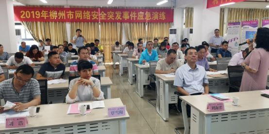 6月28日上午,2019年柳州市网络安全突发事件应急演练在广西科技大学启迪数字学院南11-01教室举行。本次演练由柳州市网信办主办,由广西科技大学启迪数字学院承办,整个演练采取实战演练方式进行。活动旨在深入贯彻执行《网络安全法》,落实中央和区、市网信办关于进一步提升网络安全突发事件应急处置能力的要求。柳州市委宣传部副部长周海洋、柳州市网信办主任韦晓玲、广西科技大学宣传部副部长覃雪梅、广西科技大学网络中心副主任(主持工作)刘浩等领导出席本次活动,来自全市20多个相关单位近60人参加了本次应急演练。