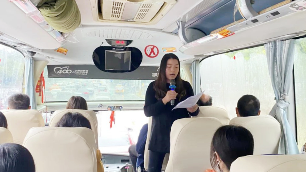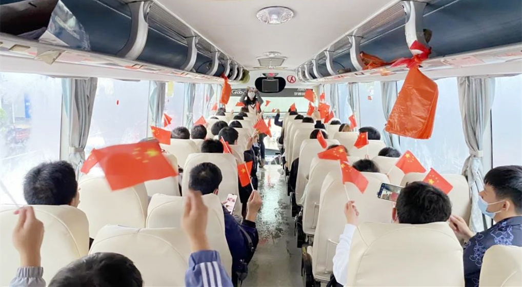 接着,2018级学生党支部党员张远平带领大家进行红色歌曲大家唱,大家挥舞着手中的国旗,爱国主义情怀伴随着《歌唱祖国》《我和我的祖国》到《少年》等红色歌曲激昂的旋律回荡在车厢中、队伍里,现场气氛热烈。