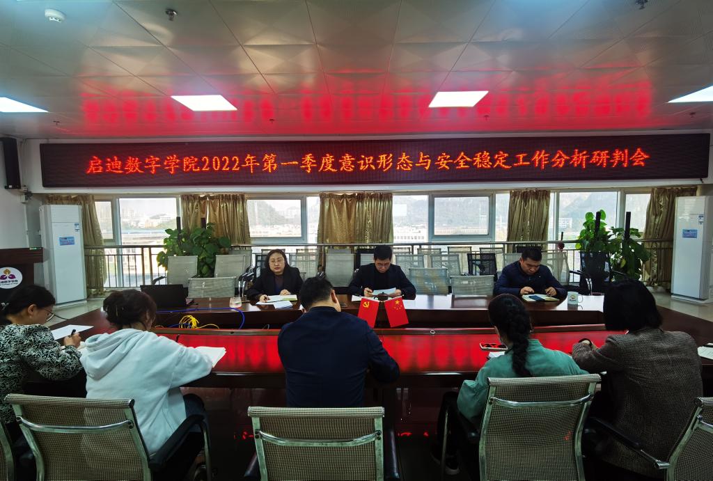 3月8日,学院召开2022年第一季度意识形态与安全稳定工作分析研判会议,学院党委委员、党支部书记、教研室主任、全体辅导员,以及办公室、团委、工会、实验室、科技园负责人参会。会议由党委书记秦培仁主持。