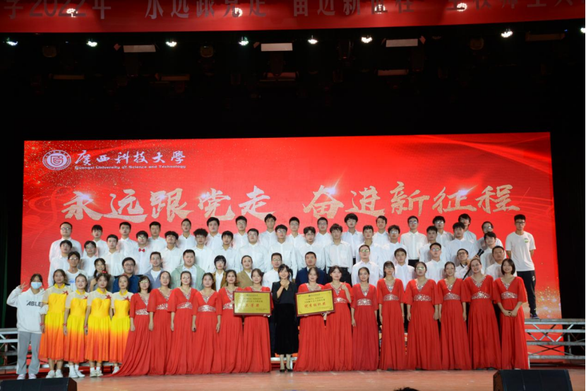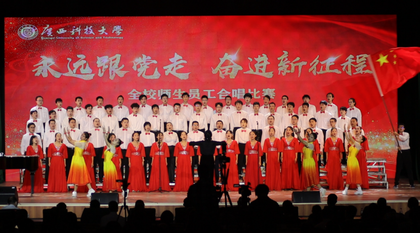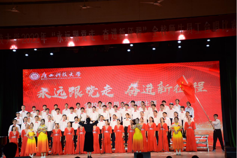 11月22日,学校在大礼堂举行了“永远跟党走 奋进新征程”为主题的全校师生员工合唱比赛。我院师生合唱《广西科技大学之歌》和《我和我的祖国》这两首歌曲,以响亮动听的歌声和精彩的表演,荣获合唱比赛三等奖、优秀组织奖。