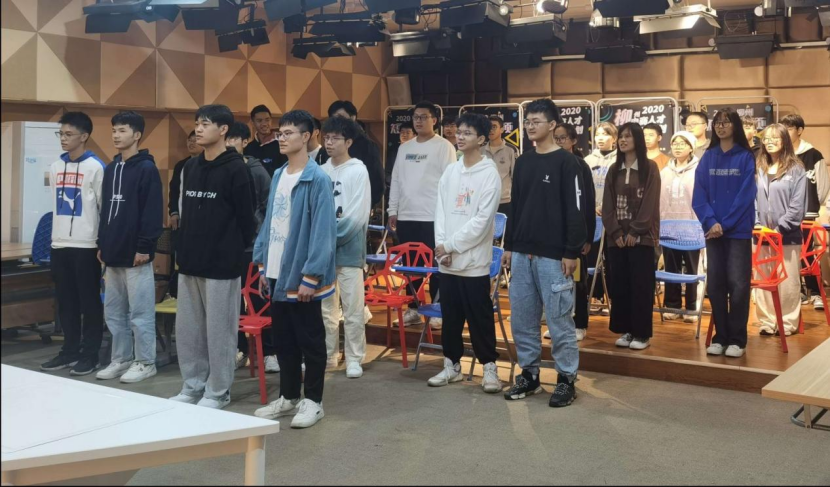 比赛前,我院师生认真训练
