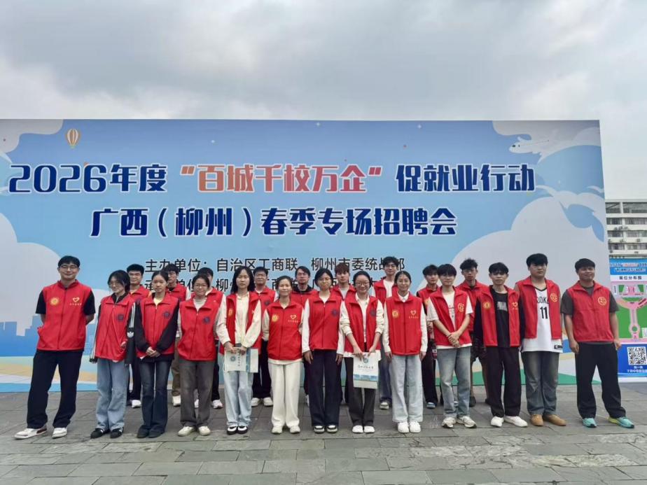 在地方赛事保障方面,学院20名志愿者服务2026柳州马拉松,圆满完成赛事物资整理与发放、赛道引导、物资补给、秩序维护等工作任务,累计服务390小时,以专业高效服务护航赛事,彰显青年学子责任与担当。