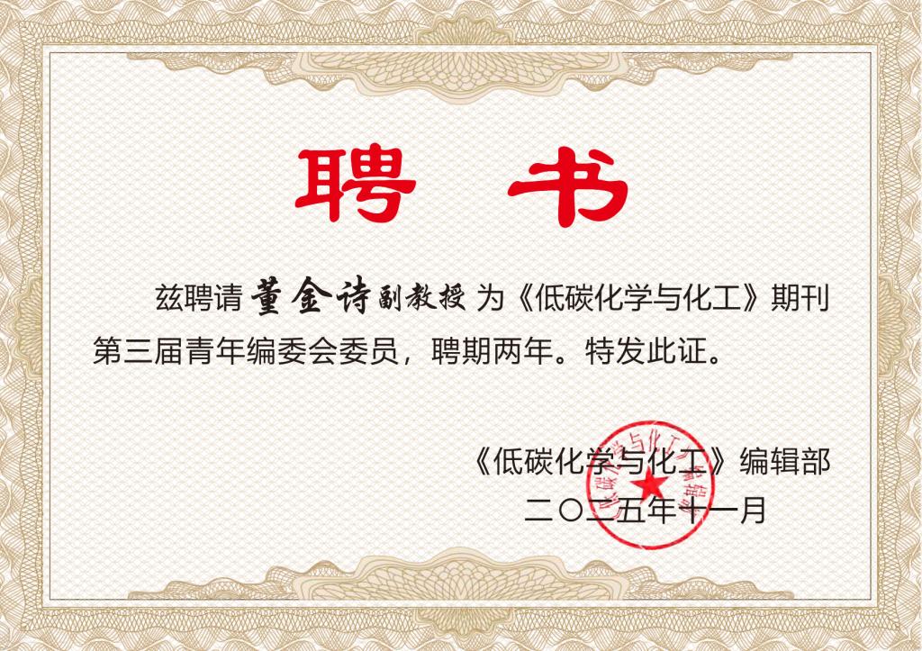 我院教师入选化工和油气领域双T2级核心期刊《低碳化学与化工》青年编委