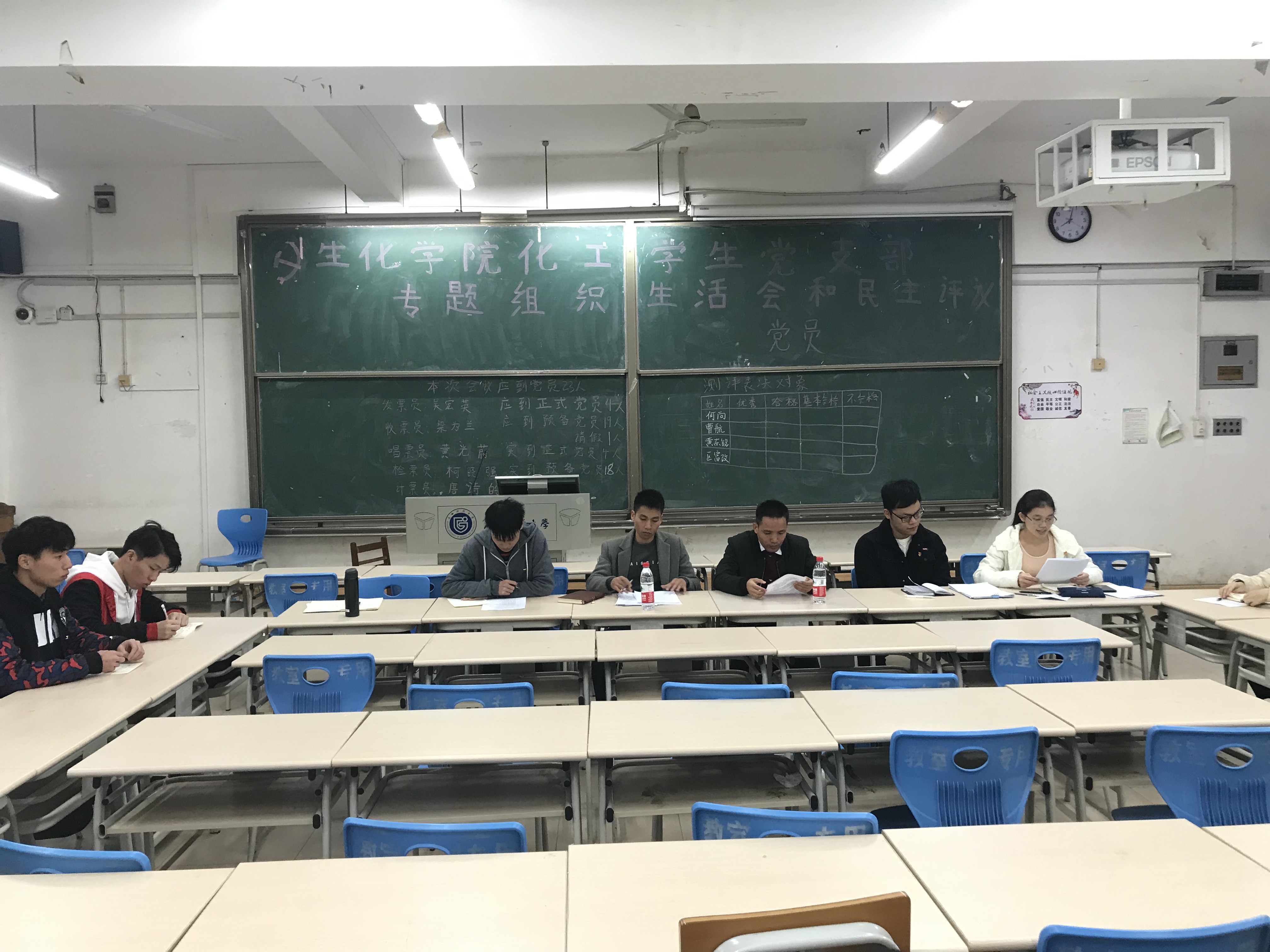 会议开始由支部书记何向老师组织支部党员们集中专题学习《中国共产党支部工作条例(试行)》和《中国共产党党员教育管理工作条例》并代表支委会做支部的情况报告,再由支部党员对支部的活动进行评议,会议第二项为开展党员的批评与自我批评环节,要求党员同志对照《中国共产党章程》的要求,结合自身学习工作实际,深入剖析自身存在的问题,会议接着进行第三项,对支部正式党员进行民主评议和投票测评。
