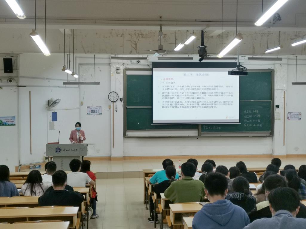 俸瑞萍围绕生源地信用助学贷款毕业生毕业确认操作方法和注意事项、还款时间和方式、违约责任等方面进行了详细的讲解。她强调,每一位同学要注意关注个人助学贷款还款计划,提前做好还款准备,按时还本付息,避免发生违约情况影响个人信用记录。