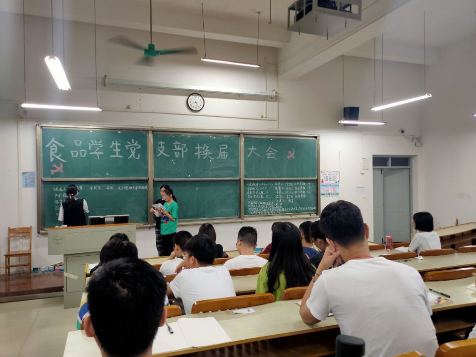 为了做好发展党员工作,保持党员队伍的新鲜活力,食品学生党支部于2020年09月20日晚7:30在6西201教室准时召开支部换届大会,本次会议由原琛同志主持。
