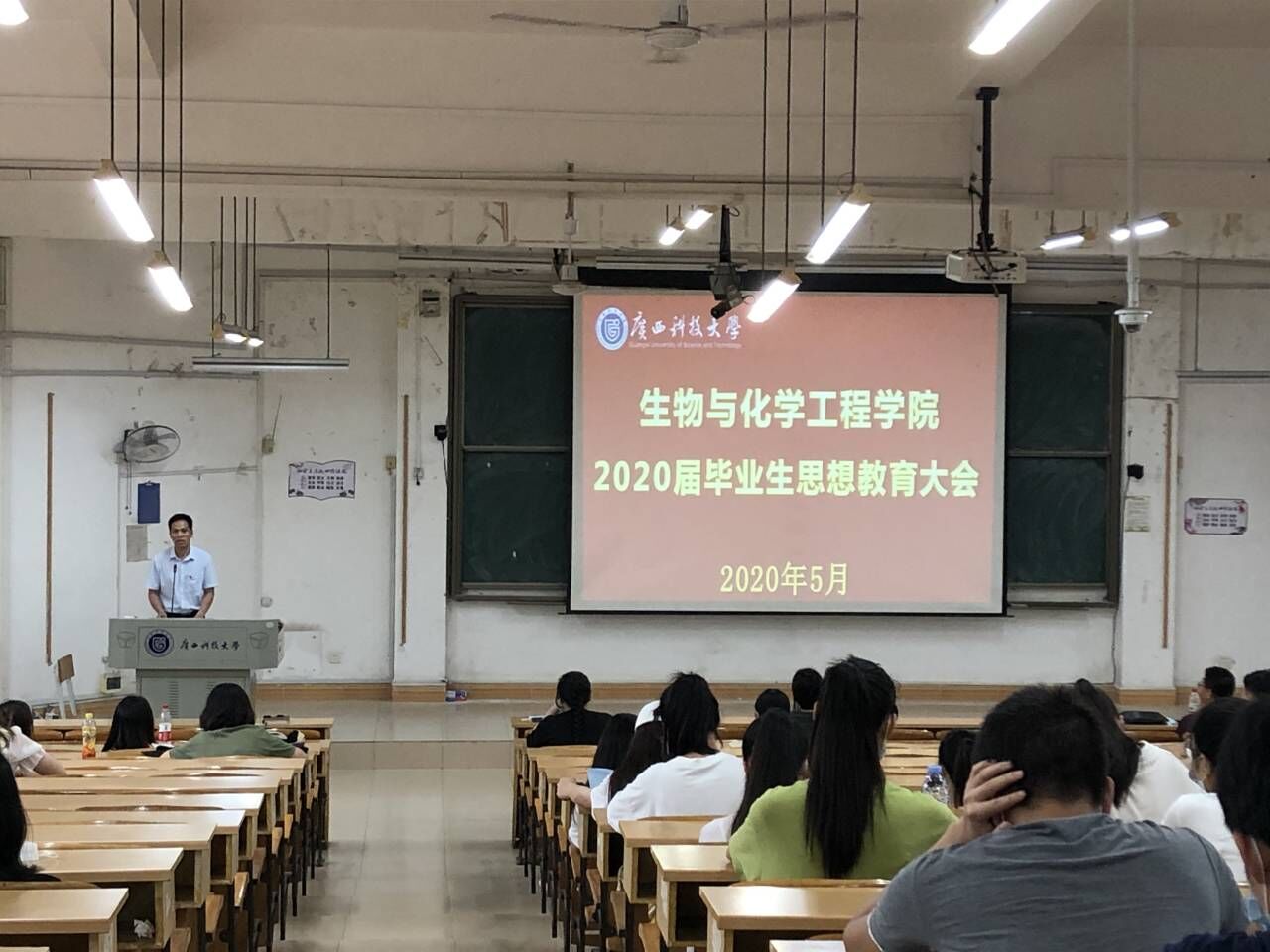 5月30日下午3:00,生化学院在四阶三召开2020届毕业生教育大会。本次大会分两批进行,第一批化工、应化、纺工专业(3:00-4:00),第二批食品、生工、制药专业(4:00-5:00)。本次会议由学院党委书记林海涛、院党委副书记钟兴、19级辅导员何向以及生化学院2020届全体毕业生共同参加。本次会议由何向老师主持。
