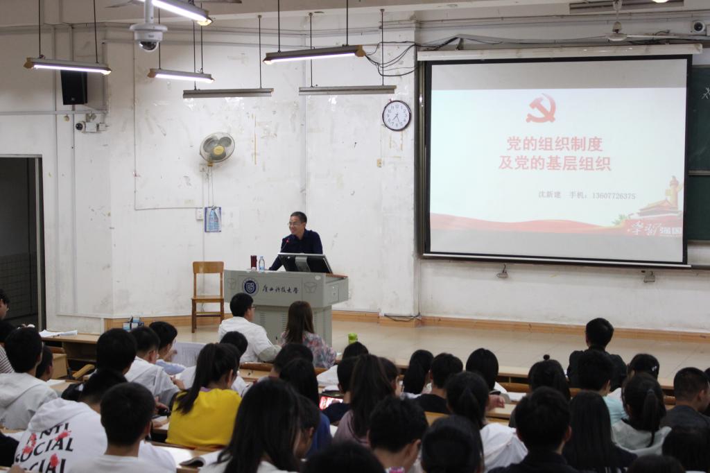 为学习贯彻习近平同志在党的十九大报告中强调的弘扬马克思主义学风,推进“两学一做”学习教育常态化制度化的重要讲话,生化学院于2019年11月6日晚在四阶一教室顺利召开“党的组织建设及党的基层组织”主题教育党课。本次党课由正处级专职党建组织员沈新建老师主讲,参加党课培训的人员为生化学院大一新生、发展党员。