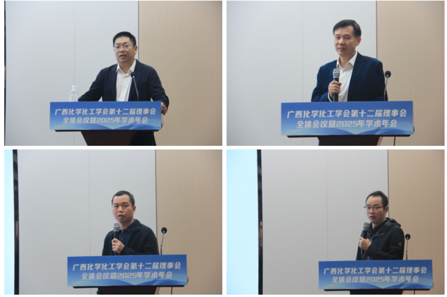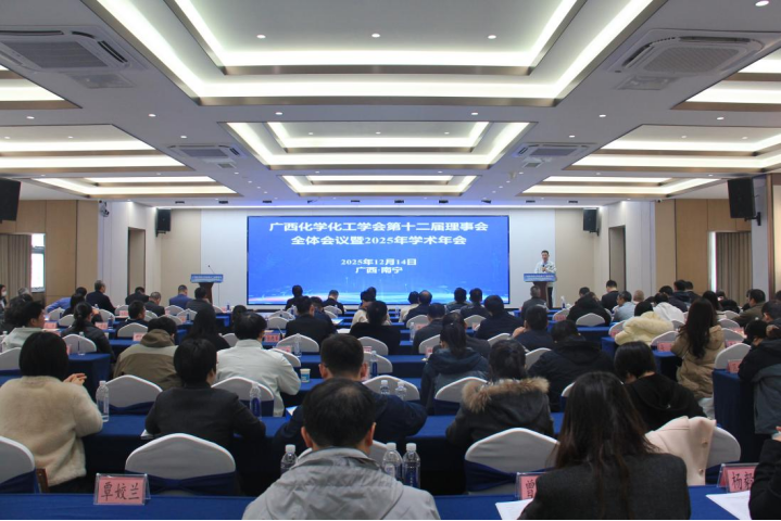 本次会议分为全体理事会议和学术年会两个阶段进行。在全体理事会议阶段,与会理事认真听取了理事长黄尚顺同志做的《广西化学化工学会2025年工作总结》报告。报告全面梳理了2025年学会在党组织建设、学术活动开展、科技咨询服务、科普与化学竞赛等方面取得的显著成绩,并对2026年未来工作重点进行了规划与展望,为学会下一步发展指明了方向。
