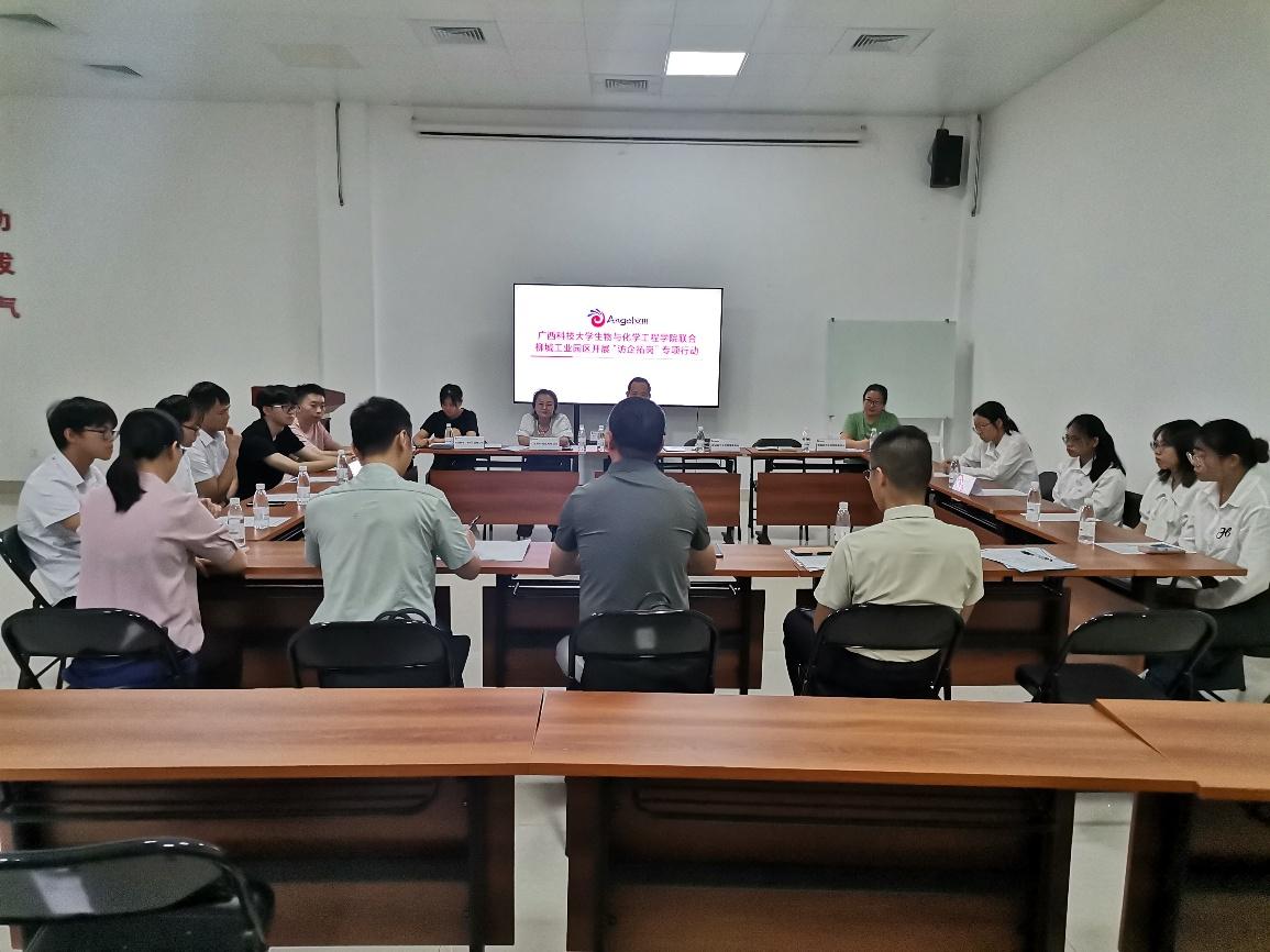 陈志波一行先后在安琪酵母(柳州)有限公司和广西柳城县川东磷化工有限公司会议室,与柳城工业园区管委会副主任韦健秋以及安琪酵母(柳州)有限公司、广西圣特药业有限公司、广西柳城县川东磷化工有限公司、广西嘉吉实业有限公司等企业代表进行了座谈交流。双方围绕产教融合、人才留桂、学生实习就业、科技成果转化等多个方面展开探讨。