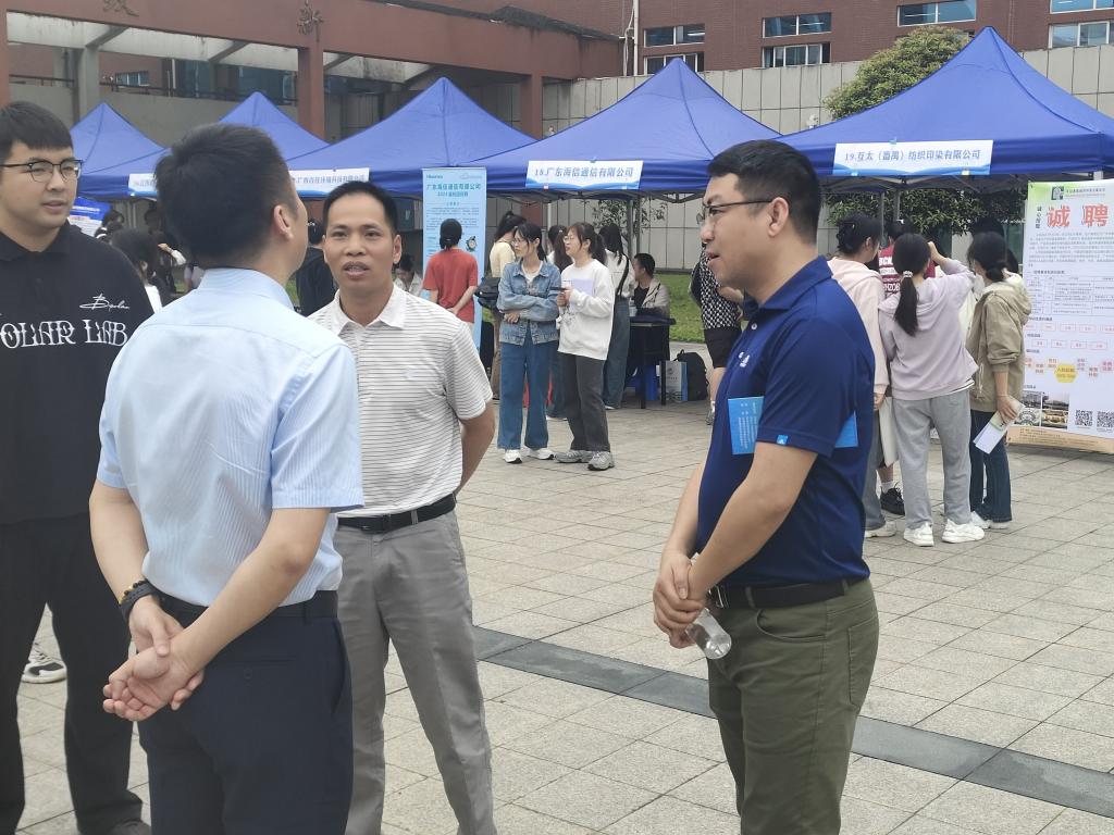 同学们与企业招聘人员进行交流